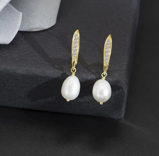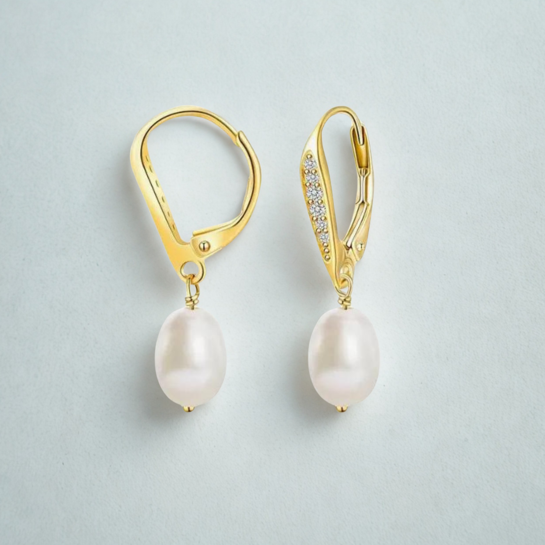 14K Gold-Filled Lever-Back Rice Pearl Earrings