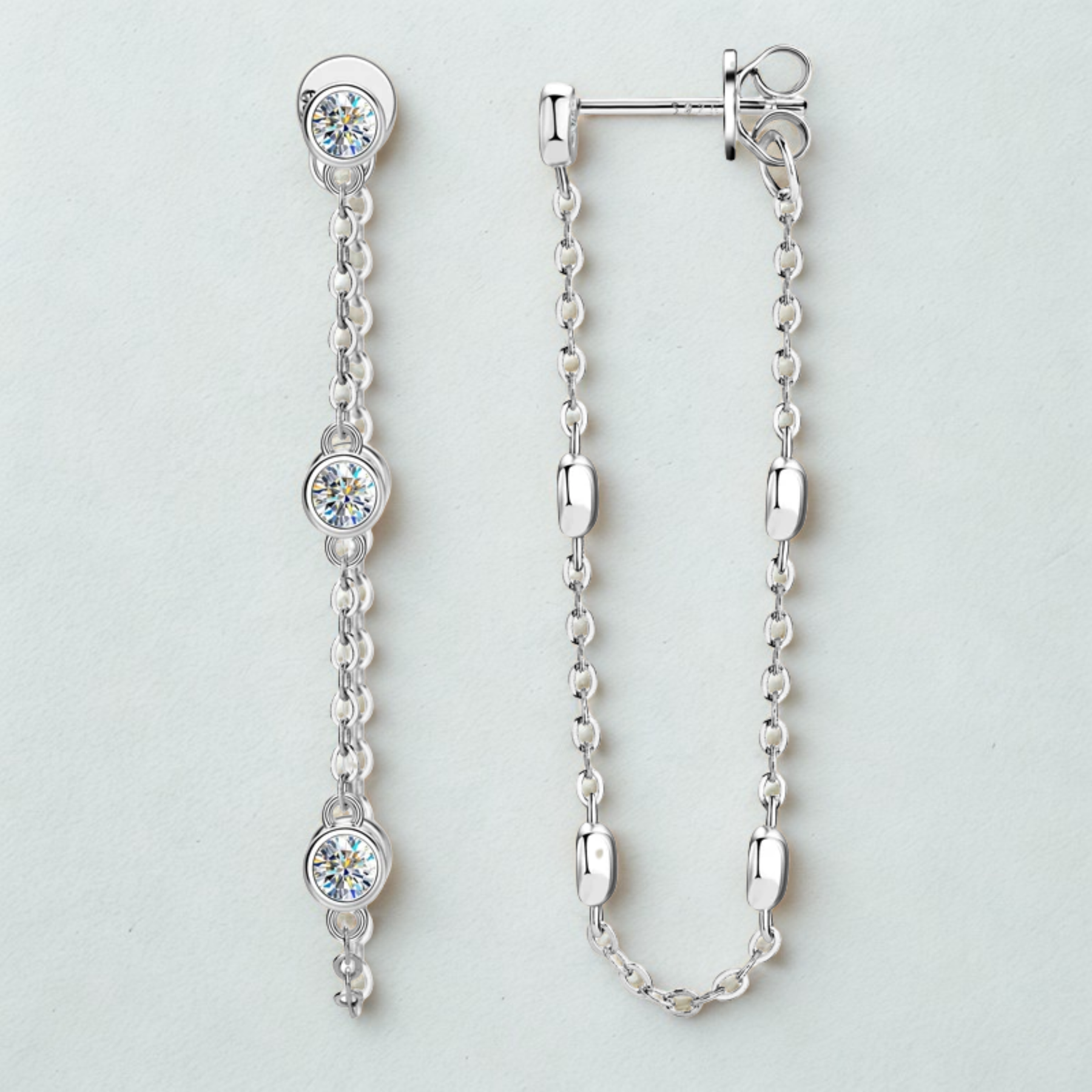 Premium Materials: Made with high-quality metals such as sterling silver or gold, providing a durable and luxurious setting for the moissanite stones.