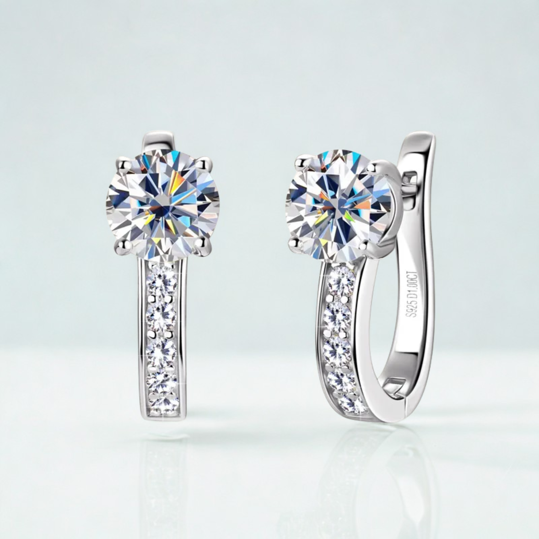 Exquisite Sparkle: These earrings feature brilliant moissanite stones that shine with unparalleled brilliance, even brighter than diamonds.
