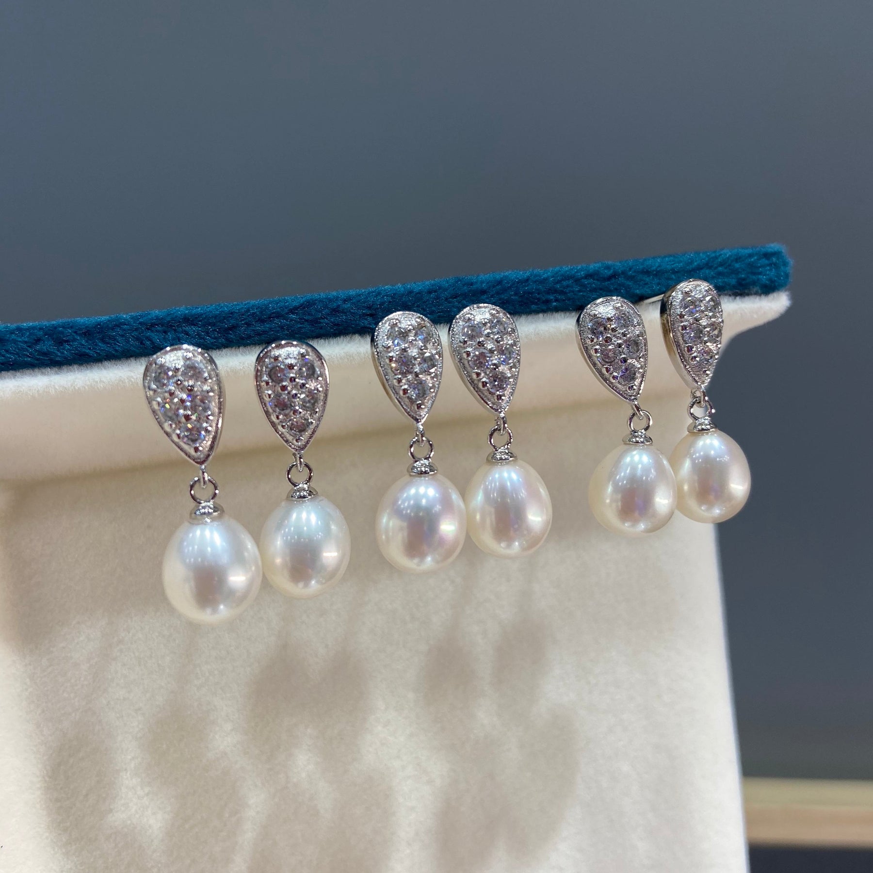 925 Sterling Silver 8-9mm Water Drop Freshwater Pearl Earrings