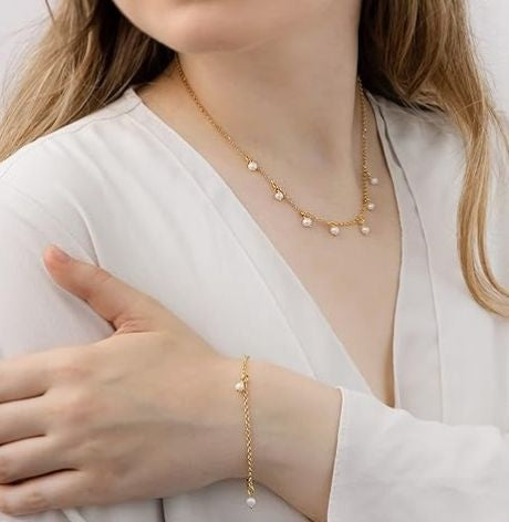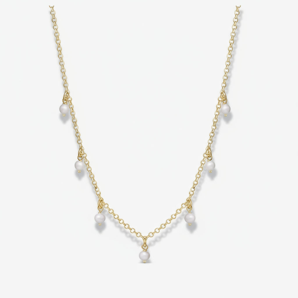 925 Sterling Silver 8-9mm White Round Pearl Necklace