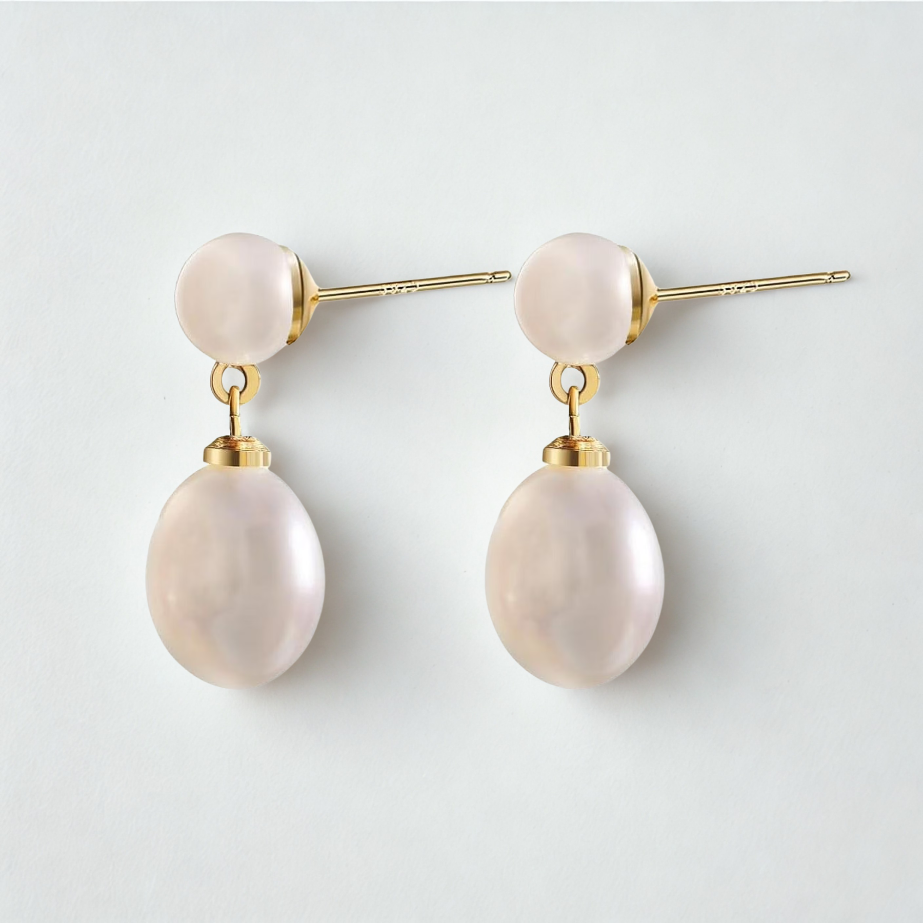 925 Sterling Silver Double Rice Pearl Drop Earrings