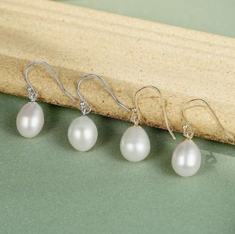 925 Sterling Silver Freshwater Rice Pearl Drop Earrings