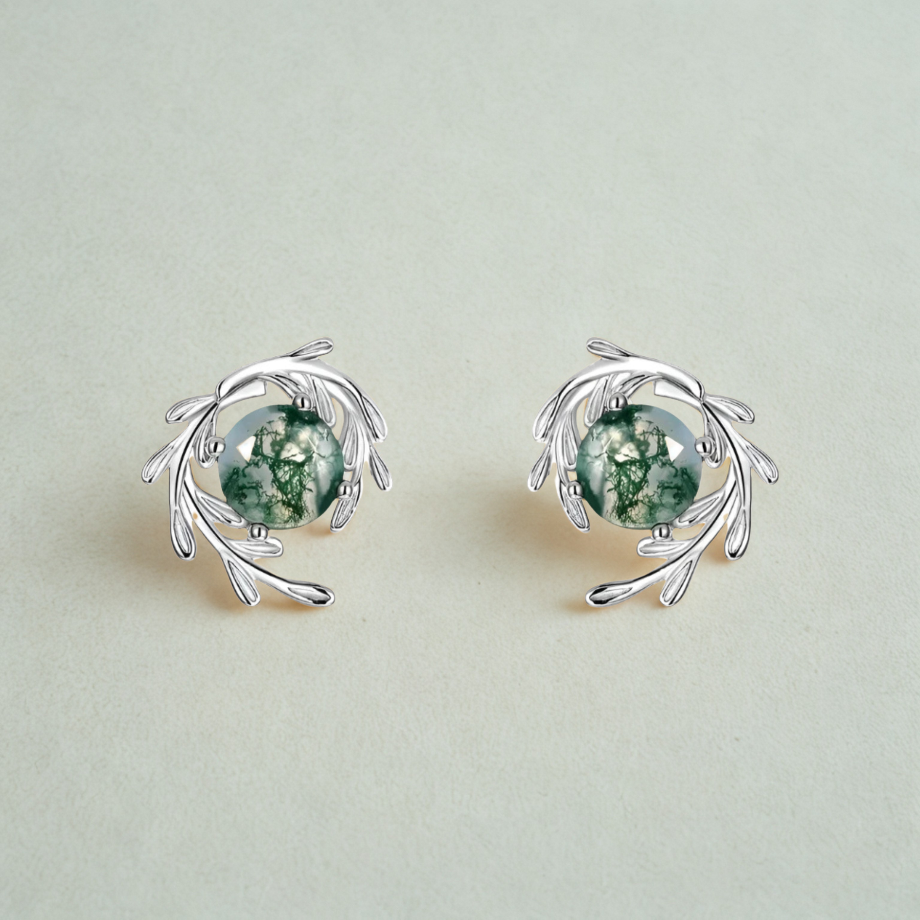 Natural Beauty: Embrace the natural beauty of moss agate, a gemstone known for its earthy tones and grounding energy, making these earrings a standout addition to any jewelry collection.