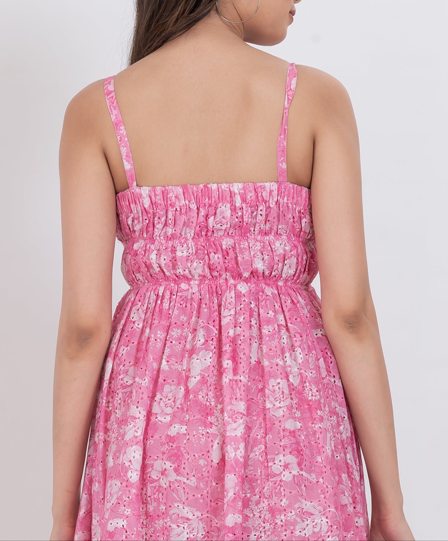 Add a touch of sweetness to your summer wardrobe with this floral spaghetti strap dress. The playful design features an elastic waist for a flattering fit and a relaxed, flowy silhouette that gives you freedom to move. The floral print in vibrant shades adds a cheerful, feminine touch, perfect for a picnic, a day at the beach, or a casual outing. The adjustable spaghetti straps provide a customizable fit, ensuring comfort and support as you enjoy the warmer weather.