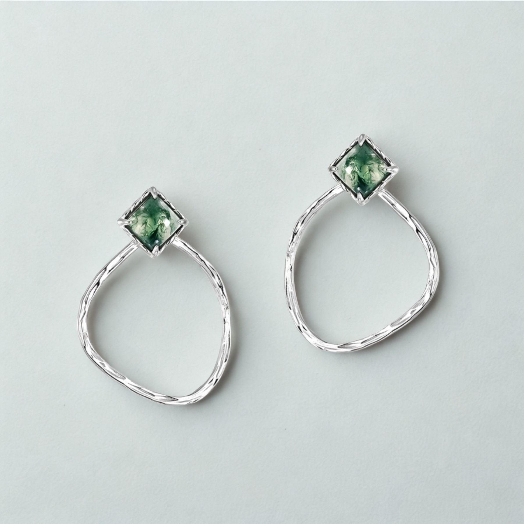 Unique Gemstones: These earrings feature stunning moss agate stones, each showcasing unique, natural patterns reminiscent of lush landscapes.