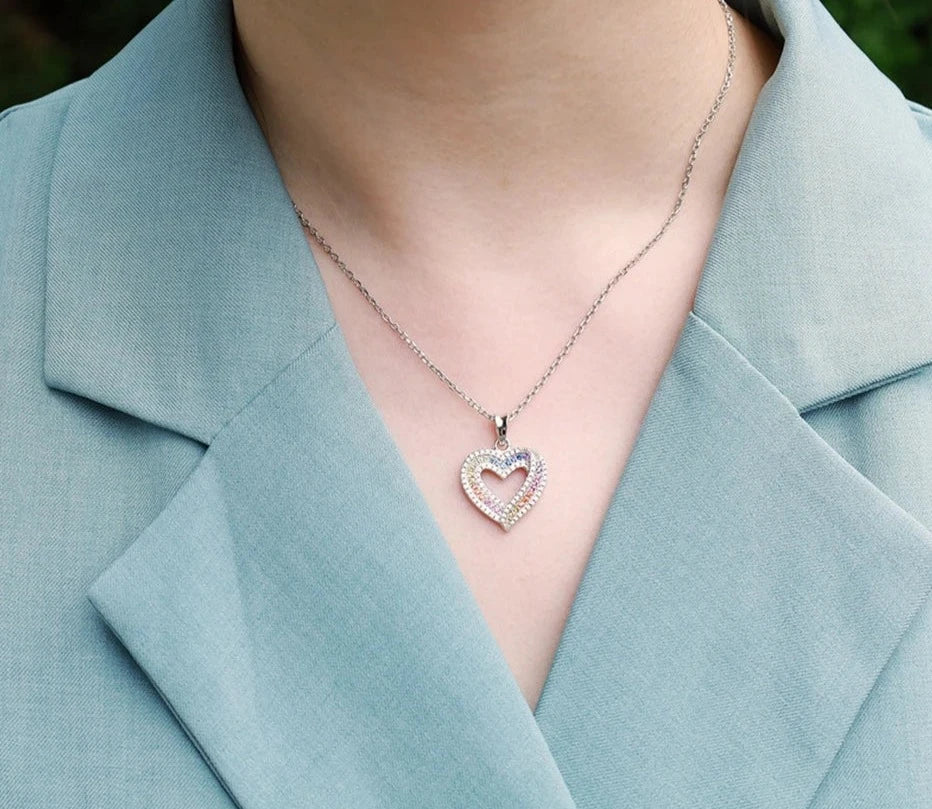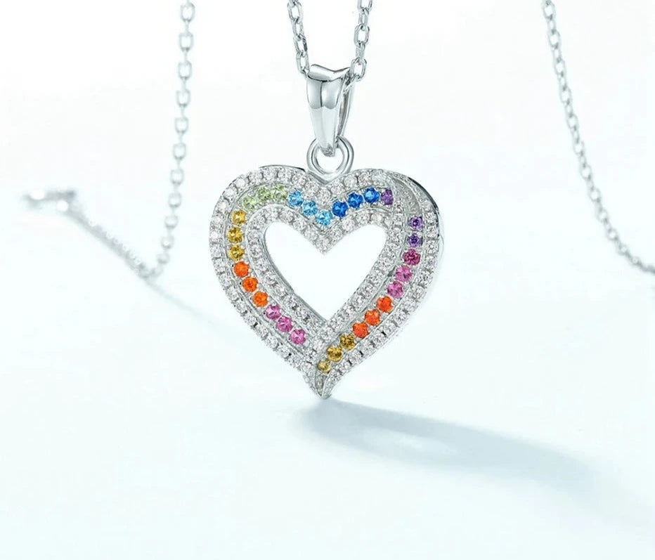 925 Silver Rainbow Colorful Zicron Necklace